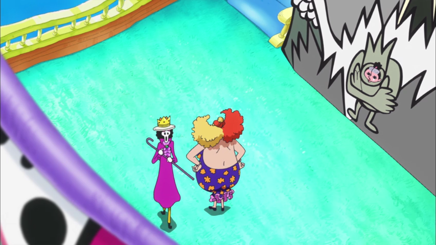 That was a funny fight. So we hurry along to something that confuses me. This dude always having these man crush on the straw hat crew. Every minute he crying and ting. Real botty man vibe if you ask me. I think sometimes he want to kiss these man. Either way the crew is slowly getting back together and the big plans for over taking the Doflamingo family is under way. I can’t wait to see the big battle with Luffy and Jesus from the Black Beard crew go head to head. I got my money on Luffy.